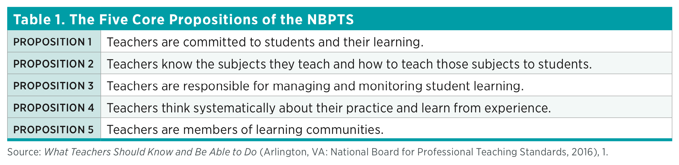 National Board for Professional Teaching Standards (NBPTS) and the